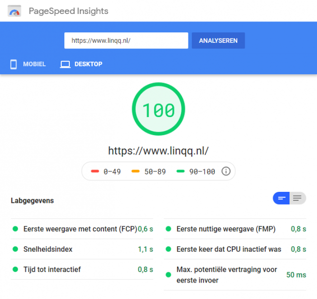 Daar heeft Google een tool voor ontwikkeld; PageSpeed Insight. Zoals de naam al zegt geeft deze tool je inzicht in de snelheid van je website. En het is heel simpel. Klik op de button hieronder en vul de link naar je website in. De resultaten komen vanzelf in beeld. De link opent in een nieuw venster dus je kan na de check gewoon verder lezen.